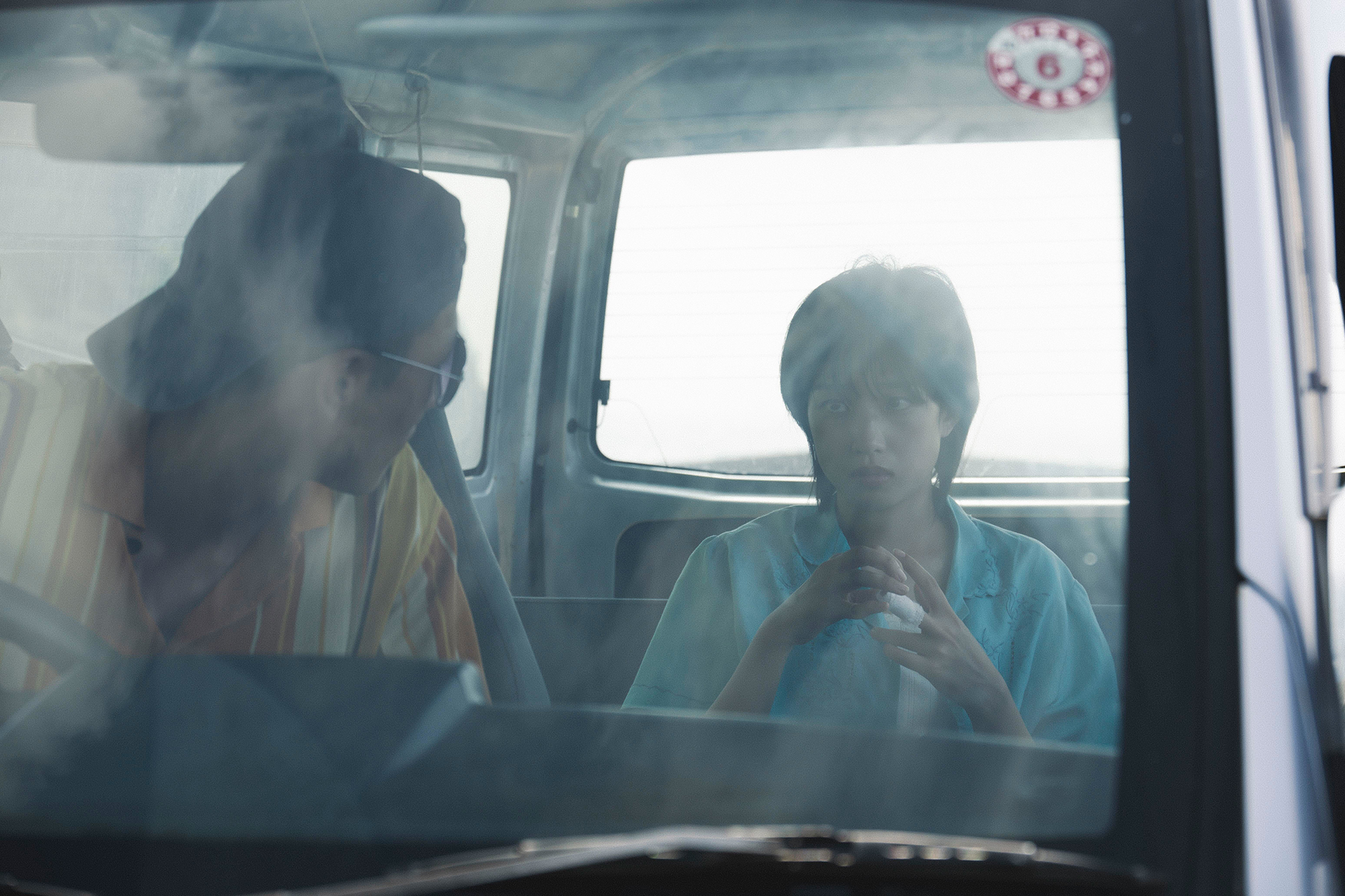 三宅唱(以下、三宅) つげ義春全集を読み、自分の好きな作品をリストにして眺めていたときに、「夏と冬を組み合わせたらどうなるんだろう?」という、シンプルな出発点でした。それぞれの季節にロケするのも楽しそうだし、と。企画を考えていたのはコロナ禍だったから余計に旅行したかったのかもしれない。 映画内映画の構造になったのは、当初「蒸発」も組み合わせて3部作にしようと考えていた名残りです。「蒸発」は劇中劇形式のマンガで、途中で江戸末期の井上井月という俳人の話になるんですね。夏と冬と、その時代劇の3部構成を考えていて、途中で「蒸発」をやらないという判断をしたけれど、劇中劇の構造が残りました。 主人公の設定がマンガ家のままでいいのかはだいぶ迷って、実はそのまま夏編の撮影に入ってしまったんだけど、初日に河合優実さんが車の後部座席で起き上がるファーストカットを撮って、「ああ、これは映画内映画にすべきものが撮れちゃったなあ」と。それで脚本家に変更する覚悟が決まった記憶があります。