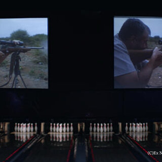 シナリオももちろん撮影を進めるうちに少しずつ変わっていくときがあります。たとえば猟友会の人々を撮るとき、プロの俳優が二人しかおらず、あとは演技未経験だったので、どうすれば彼らが昔からの集団性を維持しているように見えるのかを考えていました。コロナ禍だったこともあり、リハーサルもあまりできず、彼らに馴染んでもらう時間を用意できそうになかったんです。そこで大島渚の『日本春歌考』(1968)で宴会をしている男たちが合唱をしている場面を思い出し、みんなで同じ歌を歌わせることで一体感を生み出すのはどうかと思い付きました。サッカーのサポーターが歌うチャントみたいなものですね。撮影の少し前にオリジナルの曲を作り、唯一撮影以外で彼らが集まった衣装合わせのときに歌ってもらったんです。そのことが功を奏して、ボウリング場でのあの怖い場面が生まれました。